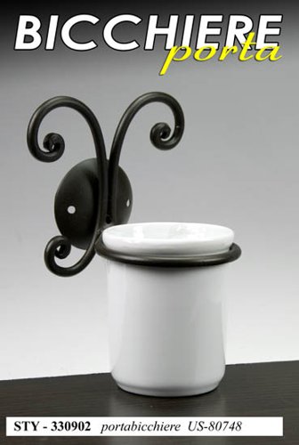 GI Serie arredo Bagno in Metallo Decorato Nero e Ceramica (portarotolo)
