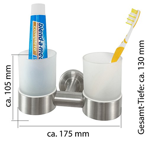 Bicchiere portaspazzolini in vetro satinato e acciaio inossidabile di alta qualità (inossidabile)