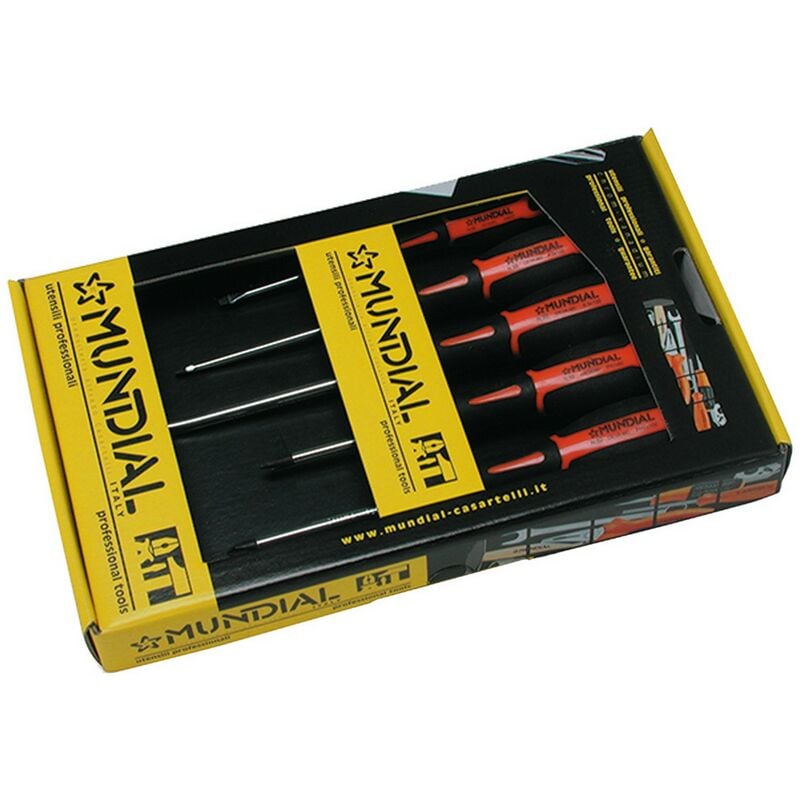 In acciaio. finitura cromata opaca della punta, manico bimateriale. n. 3 a taglio e n. 2 a croce.5 pezzi - art. 62