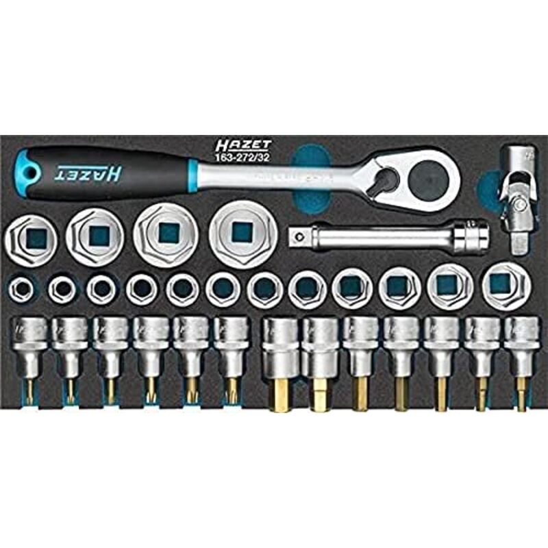Safety-Insert-System HAZET (SIS) Made in Germany Attacco: Attacco quadro, cavo, 1/2 di pollice (12,5 mm) Presa di forza: Profilo trazione con doppio esagono esterno, Profilo interno TORX®, Profilo esagonale interno Dimensioni / Lunghezza: 342 mm x 172 mm Per utilizzo manuale Dimensione sistema di ordinamento: 1/3 (342 x 172 mm) / per HAZET 165-L Safety-Insert-System HAZET (SIS) Sistema di ordinamento perfetto - tutti gli utensili saldamente inseriti al loro posto Rapido controllo di completezza integrato - individuazione immediata dell'utensile mancante Infinite possibilità di combinazione Numero utensili: 32 Azionamento 1/2 Zoll (12,5 mm) Vierkant hohl Lunghezza (cavo) 342 Unità di uscita Außen Doppelsechskant-Tractionsprofil, Innen TORX® Profil, Innen Sechskant Profil Accessori per il riscaldamento 165-L Dimensioni dell'imballaggio 1 Contenuto della fornitura 900-10, 900-11, 900-12, 900-13, 900-14, 900-15, 900-16, 900-17, 900-18, 900-19, 900-21, 900-22, 900-24, 900-27, 900-30