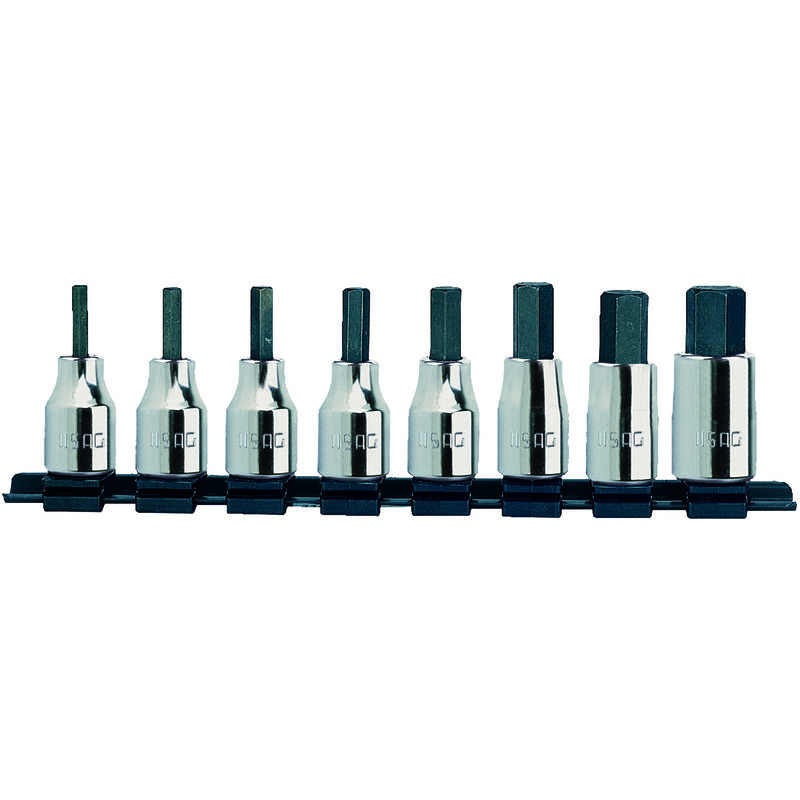SERIE DI 8 CHIAVI A BUSSOLA PER VITI CON ESAGONO INCASSATO Fornita con supporti in plastica 559 3/8 e guida in lamiera 559 B/250 Codice Peso gr Q.tà x conf. U02341510 500 1