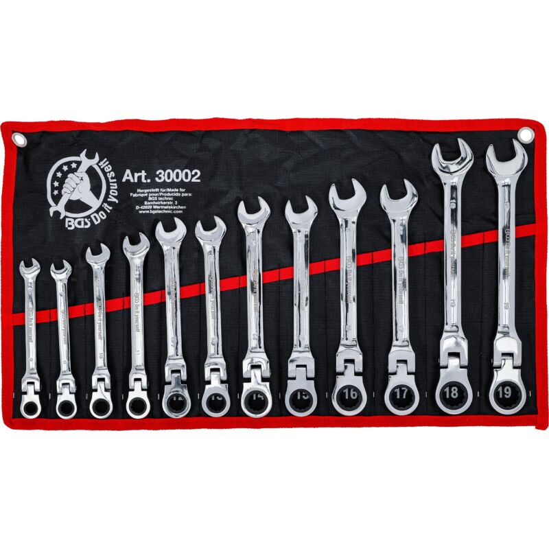 Funzione a cricchetto con 72 denti Angolo di regolazione extra piccolo 5° Testa ad anello a cricchetto inclinabile a 180° Oggetto della fornitura: Chiave combinata a cricchetto 8 mm Chiave combinata a cricchetto 9 mm Chiave combinata a cricchetto 10 mm Chiave combinata a cricchetto 11 mm Chiave combinata a cricchetto 12 mm Chiave combinata a cricchetto 13 mm Chiave combinata a cricchetto 14 mm Chiave combinata a cricchetto 15 mm Chiave combinata a cricchetto 16 mm Chiave combinata a cricchetto 17 mm Chiave combinata a cricchetto 18 mm Chiave combinata a cricchetto 19 mm Finitura della superficie Verchromt, hochglanz Peso del tessuto 1.85 Dimensioni dell'imballaggio 1 Peso lordo 1850 g Materiale (F) Chrom-Vanadium-Stahl