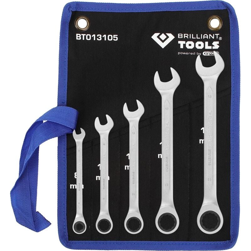 Serie da 5 pz Fabbricata conformemente a DIN 3113 A dentatura fine con 72 denti Angolo di rotazione posteriore di 5° Forma diritta Con cromatura opaca Cromo vanadio In una pratica custodia con occhielli di aggancio La serie di chiavi a cricco da 5 pezzi BT013105 di BRILLIANT TOOLS viene fabbricata secondo DIN 3113. Le chiavi poligonali metriche con funzione di cricco presentano una dentatura fine con 72 denti e ha un angolo di rotazione all'indietro di 5°. Le chiavi hanno una forma diritta e una bocca a 15°. Un'inversione della funzione di cricco (destra/sinistra) avviene grazie all'inversione della rotazione della chiave. La superficie è cromata opaca, per cui sta anche particolarmente bene in mano. La serie di chiavi a cricco con le grandezze da 8 mm a 19 mm viene fornita in una pratica custodia che è equipaggiata con occhielli di sospensione. Contenuto: 8 mm, 10 mm, 13 mm, 17 mm, 19 mm LA NOSTRA QUALITÀ: BRILLANTE I NOSTRI PREZZI: SMART Ogni utensile cela più di un quarto di secolo