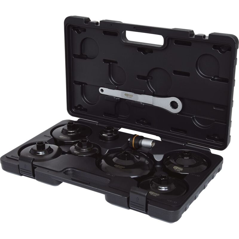 Ideale per il montaggio e lo smontaggio del coperchio filtro dell'olio difficilmente accessibile durante il cambio dell'inserto del filtro dell'olio o del filtro stesso Per il serraggio corretto secondo le indicazioni del produttore Idoneo al funzionamento verso sinistra e verso destra Attacco quadro femmina secondo DIN 3120 - ISO 1174 Attacco esagonale 21,0 mm In dotazione chiave a nastro per il filtro dell'olio da 1/2” Per utilizzo manuale Superficie laccata In robusta valigetta di plastica Azionamento quadro in pollici 1/2 Standard DIN 3120, ISO 1174 Pezzi in set 9 Peso del tessuto 3400 Imballaggio Kunststoffkoffer, extra robust Dimensioni dell'imballaggio 1 Forma tassenförmig Materiale1 lackierte Oberfläche
