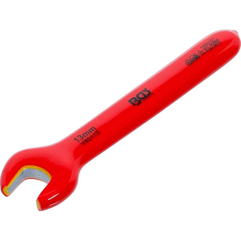 Per lavorare in sicurezza nell'area delle parti in tensione riduce il rischio di cortocircuiti strumento ottimale per elettricisti e specialisti del settore elettrico per l'installazione di morsetti e manicotti, collegamenti di conduttori, sbarre a vite fucinato a stampo isolamento VDE fino a 1000 V, secondo EN 60900/IEC 60900 Inclinazione della bocca 15° DIN: EN/IEC 60900 Materiale: acciaio al cromo vanadio Apertura per chiave: 13 mm Larghezza tra le piastre 13 mm DIN EN/IEC 60900 Imballaggio adatto per essere appeso alla parete Ja Peso del tessuto 0.066 Dimensioni dell'imballaggio 1 Peso lordo 66 g Posizione della ganascia 15 ° Materiale (F) Chrom-Vanadium-Stahl
