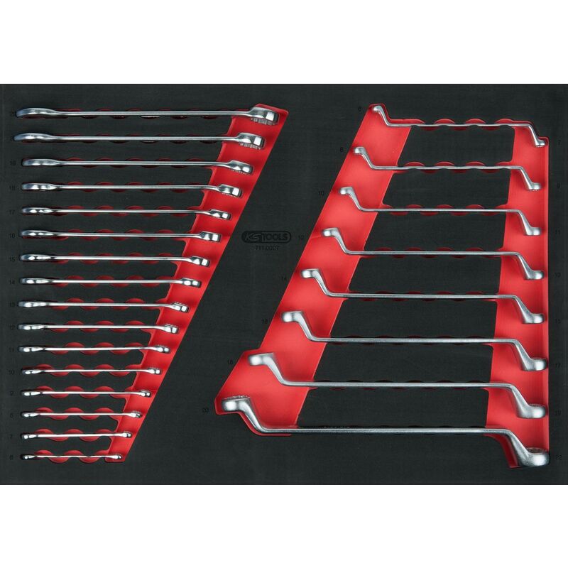 Modulo 1/1 Per carrelli e cassetta portautensili Disposizione fissa grazie al collocamento preciso Resistente ad olio e agenti chimici Modulo in poliuretano espanso bicolore di qualità Lunghezza totale L in mm 390.0 Attributo di funzione 1 Öl- und Chemikalienbeständig Dimensioni del sottopiede Einlage ganze Schubfläche Altezza H 35.0 Pezzi in set 24 Peso del tessuto 2755 Larghezza B 564.0 Imballaggio Systemeinlage aus Schaumstoff Dimensioni dell'imballaggio 1 Materiale1 Feinster Chrom Vanadium Stahl, matt satiniert verchromt