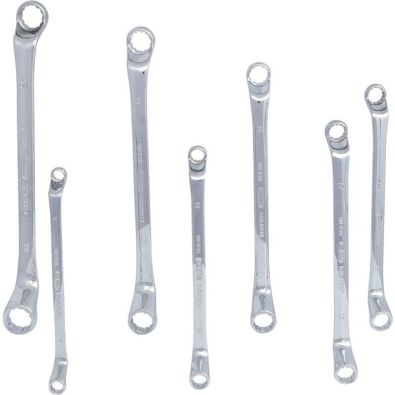Profilo FlankTraction DIN 838 / ISO 3318 / ISO 1085 / ISO 10104 Anelli piegati a 75° Sottili Cromate lucide Cromo-vanadio Forma della chiave Ring 75° gekröpft Larghezza minima della chiave 8 Standard ISO 3318, ISO 1085, DIN 838, ISO 10104 Profilo 2 metrisch Profilo 1 Flank Traction Pezzi in set 7 Peso del tessuto 1030 Imballaggio Rolltasche Dimensioni dell'imballaggio 1 Materiale1 Feinster Chrom Vanadium Stahl, hochglanz verchromt Max. Larghezza tra i piani 22