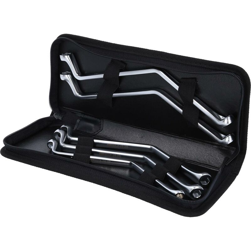 Esagonale Ideale per raccordi filettati di impianti di frenatura Anelli inclinati e piegati a gomito Per spurgare i freni senza smontare le ruote Cromata opaca Cromo-vanadio In astuccio in similpelle Larghezza minima della chiave 7 Profilo 1 6-Kant Pezzi in set 5 Campo di applicazione generale zur Bremsentlüftung ohne Demontage der Räder Peso del tessuto 1200 Dimensione in mm 7-8-9-10-11 Dimensioni dell'imballaggio 1 Forma Curvo Materiale1 Feinster Chrom Vanadium Stahl, matt satiniert verchromt Max. Larghezza tra i piani 11