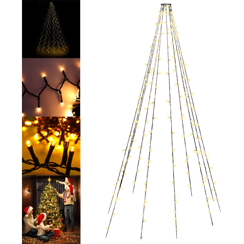 Serie di luci natalizie per pennoni o alberi di Natale da 8 m 10 fili luminosi lunghi 8+2 metri, con 36 LED per filo. Incl cavo di corrente da 15 m 360 LED a lunga durata e a risparmio energetico che emanano una luce bianca e calda Resistente agli spruzzi (IP44), per uso interno ed esterno. Incl. ganci di montaggio Decorazione natalizia per giardini, piazze, negozi, gastronomie, ecc. È stato scientificamente provato che l'atmosfera natalizia, con le sue luci e decorazioni, rende felici. Nel giardino di casa, nella piazza centrale di una piccola comunità o in un'attività di ristorazione, con questa serie luci natalizie da esterno per pennone, deliziare famiglia, vicini o passanti è possibile. Il montaggio è molto semplice. Tutto ciò che serve è un'asta fissa per bandiera (non inclusa) e la catena luminosa Toboli. La serie di luci a LED è composta da 10 fili luminosi fissati a un anello. L'anello viene fissato al braccio issabile e poi tirato su. Successivamente, i fili di luci si