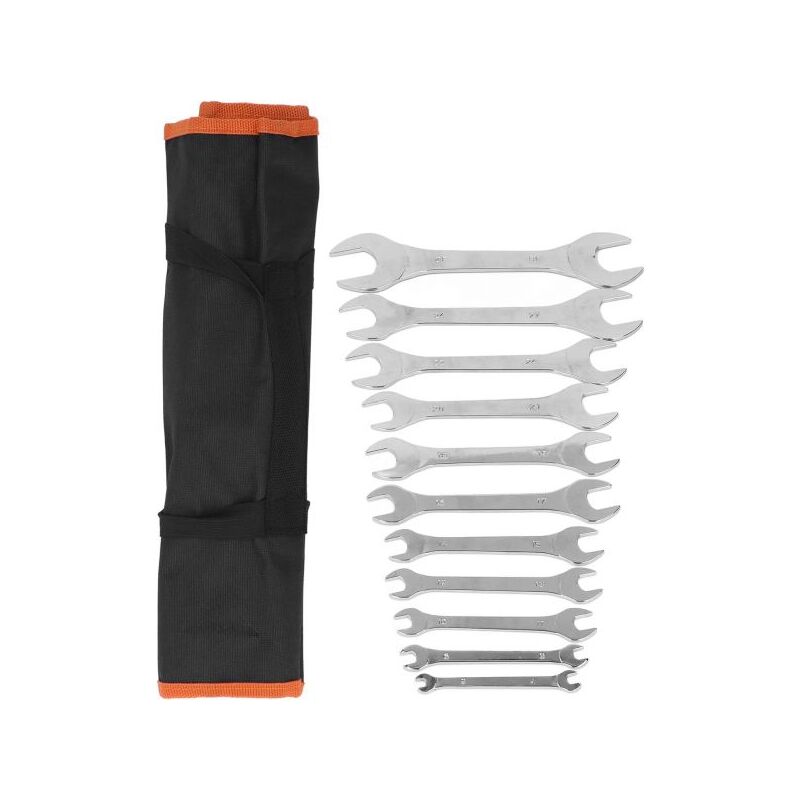 Set composto da 10 chiavi combinate a forchetta. Il nostro set di chiavi è stato aumentato nelle dimensioni comuni per soddisfare meglio più esigenze. Le chiavi hanno uno spessore di 3 mm, consentendoti di utilizzarle efficacemente in aree ristrette. Misure: 8 x 9, 10 x 11, 12 x 13, 14 x 15, 16 x 17, 18 x 19, 20 x 21, 22 x 24, 24 x 27, 30 x 32