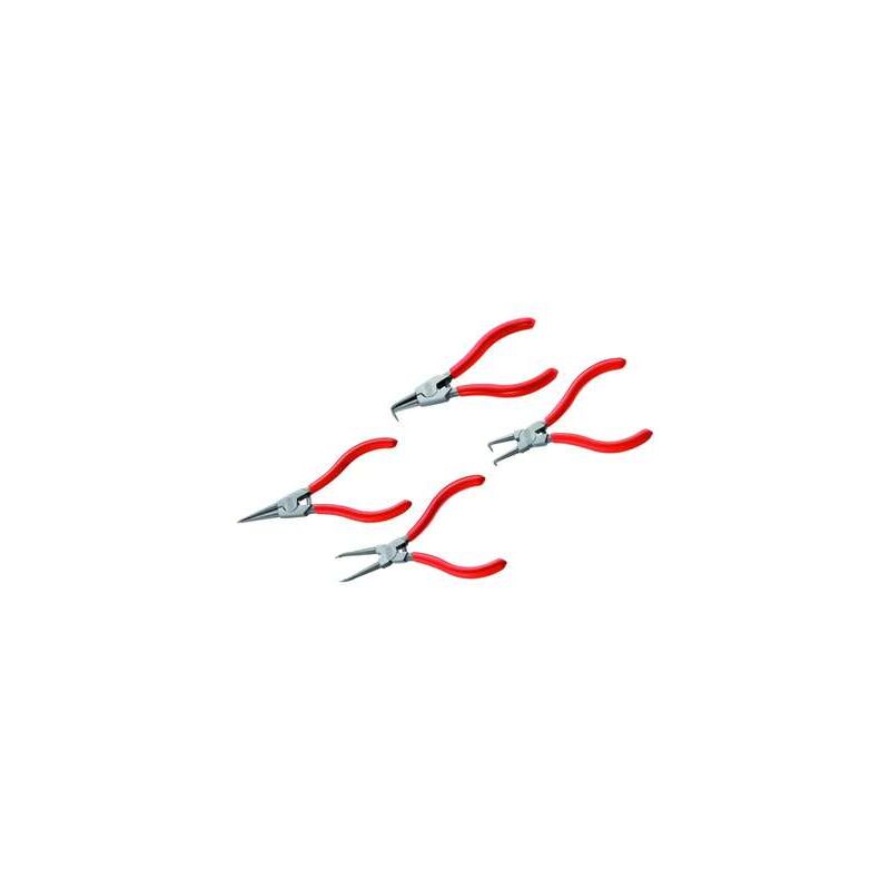 SERIE 4 PINZE PER ANELLI ELASTICI • Modello standard • Punte e becchi in corpo unico • Becchi conici per la massima accessibilità • Manici rivestiti in PVC • Esecuzione verniciata trasparente Codice Peso gr U01270045 456