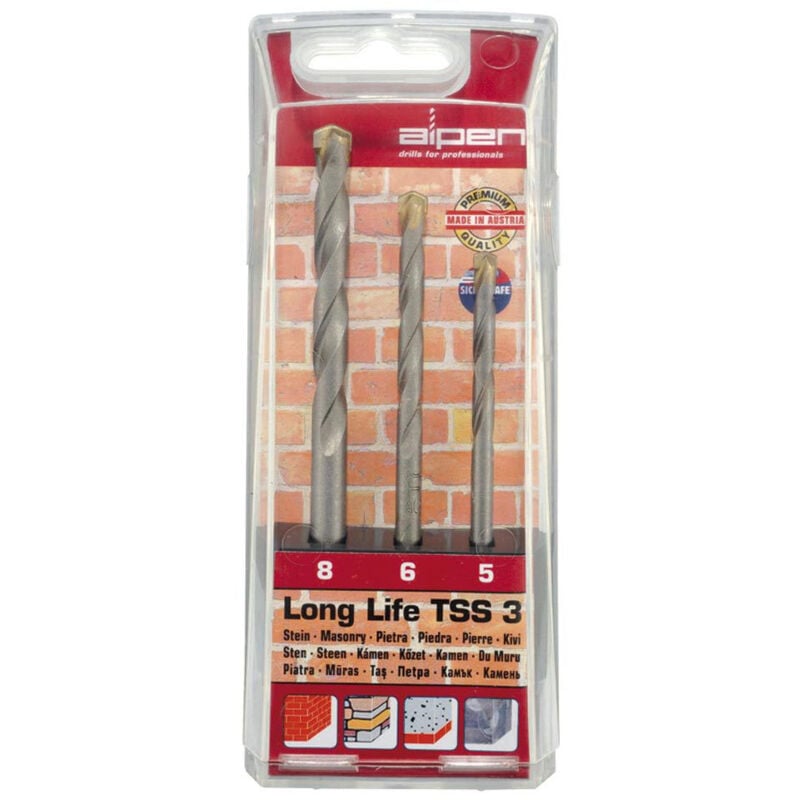 Widia Long Life 3 Pz. Alpen Set di punte da trapano Widia Long Life. - Punte da trapano de metallo duro con lega de Widia (Carburo de Tungsteno), che fornisce aa elevata durezza e durata. - Adatto per la foratura a percussione e l'alesaggio di pareti e pietre naturali. -de foratura ad alta velocità grazie all'affilatura aggressiva de la punta. -- Elevata resistenza e stabilità grazie alle scanalature fresate di precisione con. - Adatto per calcestruzzo, pietra naturale e mattoni. El set è composto da: > 1 Widia Long Life punta per trapano di 5.0 mm. di diametro. > 1 Widia Long Life bit de 6.0 mm. di diametro. > 1 Widia Long Life bit de 8.0 mm. di diametro.