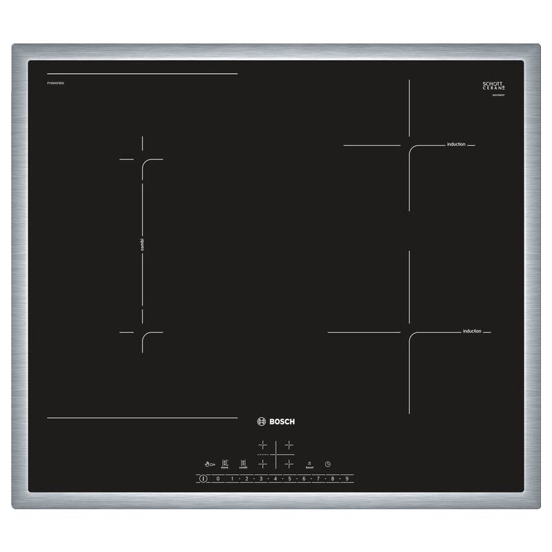 Facile da capire, ancora più facile da utilizzare. Grazie al pannello di controllo intuitivo, puoi selezionare le zone di cottura e impostare il livello di potenza specifico desiderato, in modo diretto e rapido. DirectSelect dispone anche di un pratico display per il consumo di energia, nonché delle funzioni di Avvio rapido e Riavvio. Porta il tuo modo di cucinare su un livello completamente nuovo. Ancora più potente: la funzione PowerBoost nei piani cottura a induzione aggiunge ulteriore potenza per accelerare il processo di cottura. Ad esempio, adesso è possibile far bollire 2 litri di acqua quasi tre volte più velocemente rispetto ai piani cottura in vetroceramica tradizionali. Bosch Serie 6 PVS645FB5E. Colore del prodotto: Nero, Acciaio inossidabile, Posizionamento dell'apparecchio: Da incasso, Dimensione della larghezza del piano cottura: 60 cm. Certificazione: AENOR, CE. Tipo di controllo: Touch, Posizione di controllo: Frontale superiore, Tipo di timer: Digitale. Potenza