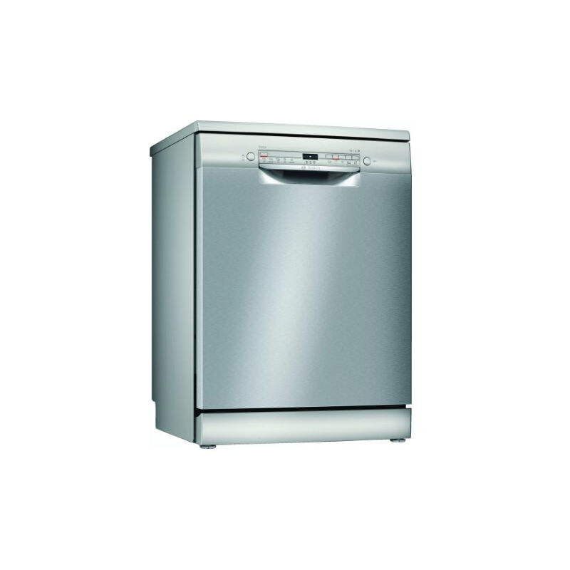 Bosch Serie 2 SMS2ITI11E. Posizionamento dell'apparecchio: Libera installazione, Dimensione: Dimensione massima (60 cm), Colore della porta: Acciaio inossidabile. Numero di coperti: 12 coperti, Classe emissione rumore: C, Emissione acustica: 48 dB. Regolazione piedini: 3 cm. Classe efficienza energetica: E, Consumo di acqua per ciclo: 10,5 L, Consumo energetico per 100 cicli: 92 kWh. Larghezza: 600 mm, Profondità: 600 mm, Altezza: 845 mm Home Connect: lavastoviglie connesse per una vita più semplice. Con la App Home Connect è possibile controllare da remoto la lavastoviglie connessa, accedere ai manuali di istruzioni in formato digitale e consultare utili suggerimenti d'utilizzo direttamente dal proprio smartphone o tablet. Programma Preferito Con il programma Preferito, si possono attivare i programmi di lavaggio più utilizzati e le opzioni preferite, combinandoli fra loro, in modo facile e veloce. Può essere attivata con la App Home Connect o direttamente dal pannello dicontrollo
