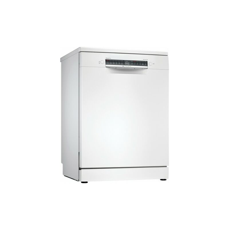 Facile da caricare con controllo da remoto tramite App Home Connect. Bosch Serie 4 SMS4HMW06E. Posizionamento dell'apparecchio: Libera installazione, Dimensione: Dimensione massima (60 cm), Colore della porta: Bianco. Numero di coperti: 14 coperti, Classe emissione rumore: B, Emissione acustica: 42 dB. Regolazione piedini: 2 cm, Applicazioni per il controllo supportate: Bosch Home Connect. Classe efficienza energetica: D, Consumo di acqua per ciclo: 9 L, Consumo energetico per 100 cicli: 85 kWh. Larghezza: 600 mm, Profondità: 600 mm, Altezza: 845 mm Design Posizionamento dell'apparecchio Libera installazione Dimensione Dimensione massima (60 cm) Pannellabile No Colore della porta Bianco Colore pannello di controllo Argento Tipo di controllo Touch Display incorporato Sì Addolcitore d'acqua integrato Sì Lunghezza cavo 1,75 m Lunghezza tubo interno 1,9 m Lunghezza tubo di scarico 1,65 m Regolazione cestello superiore Sì Livelli di altezza regolabile del cestello superiore 3 Tipologia