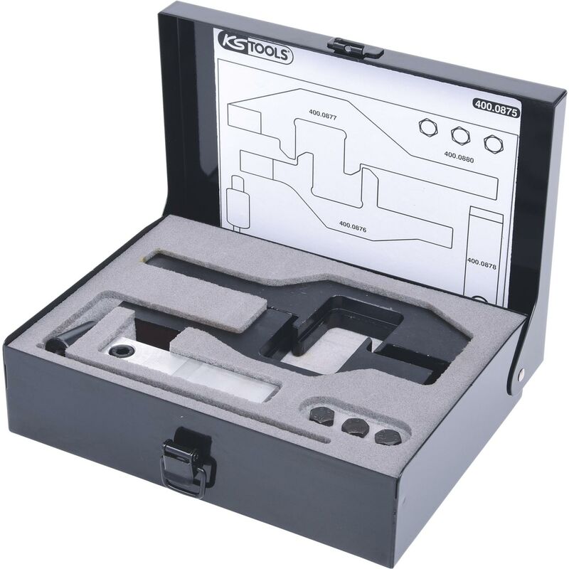 In robusta cassetta metallica Per la riparazione professionale del motore Elevata adattabilità Per il bloccaggio dell'albero a camme Per la sostituzione della catena di distribuzione Campi di applicazione: BMW Mini con motori 1,6 (codice motore: N14 / R56), Peugeot 207, 308 con motori 1,6 (codice motore: EP6 / EP6DT / DTS), Citroën con motori 1,6 (codice motore: EP6 / EP6DT / DTS) Codice motore PSA 5FD (EP6DTS) Pezzi in set 7 Area di applicazione BMW, Mini, PSA Peso del tessuto 1486 Imballaggio Stahlblechkoffer Dimensioni dell'imballaggio 1