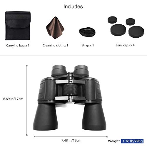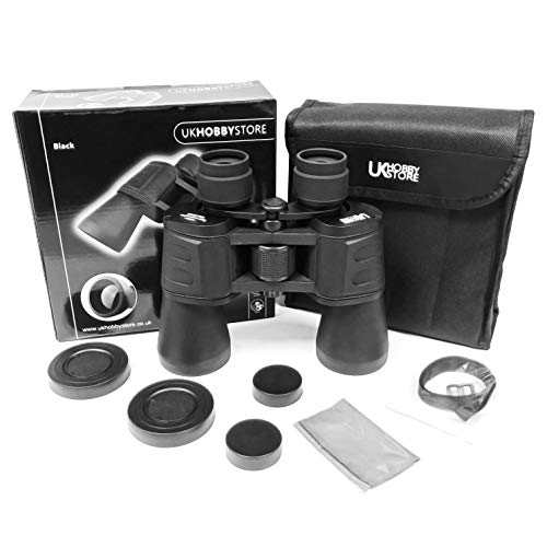 Serious user 10x50 binoculars with fully coated optics for all uses including birdwatching, astronomy, sports and wildlife. 10 x 50 high power magnification. Comes with case, lens caps, strap, cloth and warranty.