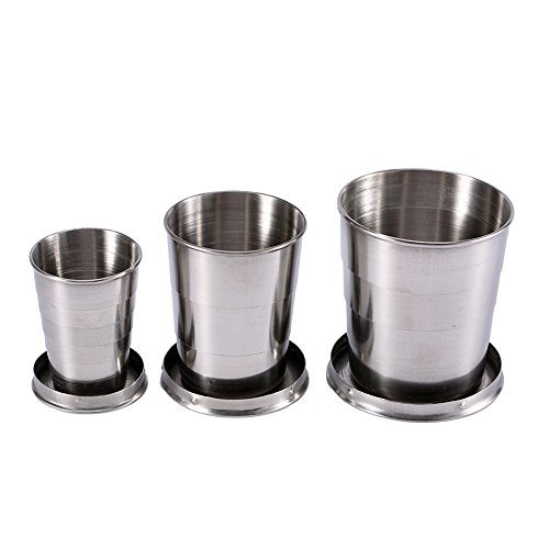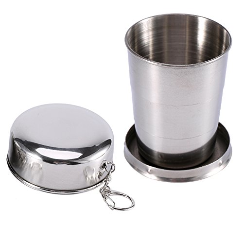 Serlium Tazza pieghevole, tazza pieghevole in acciaio inossidabile Tazza portatile in metallo con portachiavi per escursioni in campeggio(l)