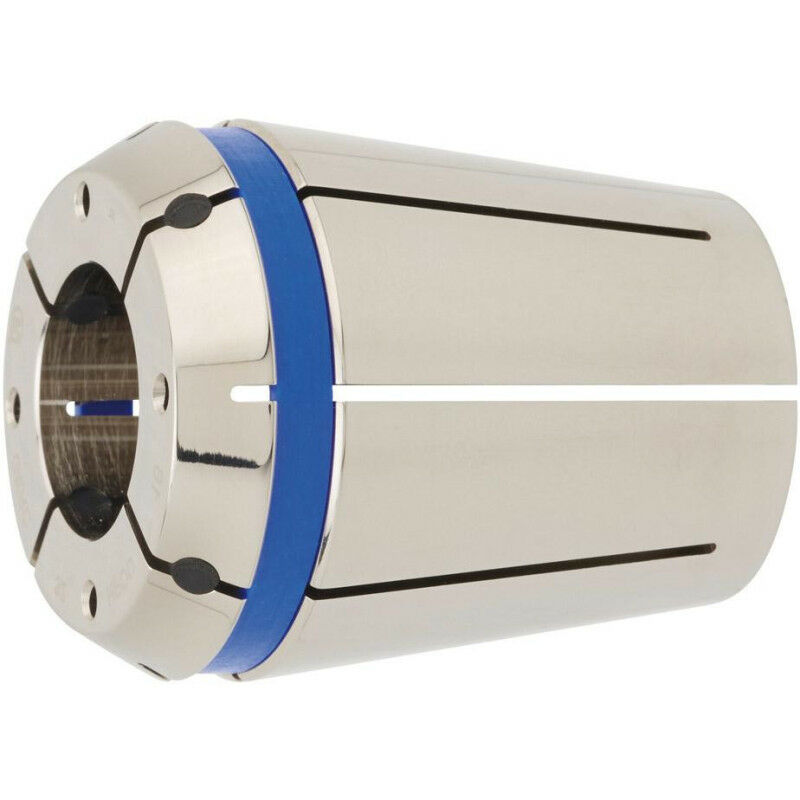 Mandrino a pinza di precisione GERC25-HPDD / 429E - Simile alla norma DIN ISO 15488-A (vecchia DIN 6499) - Accuratezza media del sistema di 3 µm (alla distanza 3 x D max. 50 mm) in mandrini a pinza di precisione - Tenuta per il raffreddamento interno (utilizzabile fino a 80 bar) - Ugelli di spruzzatura aggiuntivi. per spruzzare il refrigerante sul tagliente su un utensile senza canale di raffreddamento - Gli steli con superficie laterale possono essere utilizzati solo in misura limitata. La superficie deve trovarsi dietro il tappo di gomma. per ottenere una tenuta - Per l'uso nella gamma HSC e per risultati di lavorazione di alta precisione nel CENTRO P Nota: I GERC-HPDD non hanno un diametro di serraggio colmabile (tolleranza h8). né nel CENTRO P né nel mandrino a pinza standard. dove, tuttavia, l'anello di identificazione blu. che non ha funzione di tenuta. deve essere rimosso.