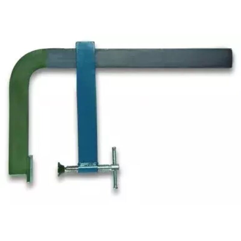 Strettoio tipo falegname universale, asta in acciaio di alta qualita' al mangano silicio sezione mm.50x10 corsoio in acciaio forgiato e stampato ad alta resistenza profondita' mm.500 rondella in acciaio pieno inclinabile e rotante vite di bloccaggio zincata.
