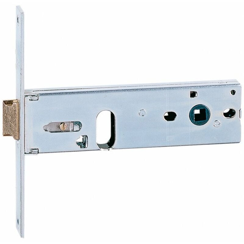 Serratura da infilare per fasce zincata. 2 mandate e scrocco, chiusura laterale, con cilindro, 3 chiavi, scatola mm. 173x44. Art. 704
