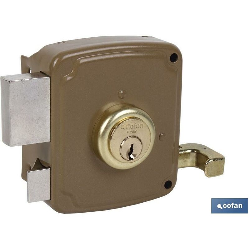 Serratura da applicare Serratura da applicare. Leva in acciaio. Cilindro tondo più 3 chiavi (2 giri). Incontro e bocchetta inclusi. Chiusura e maniglia interna. Finitura smaltata. Contiene viti di fissaggio. Alta: 9,30 Larghezza: 9,20 EAN: 8445187206500 Peso (kg): 0,857 Profondità: 18,50 Riferimento: 14940100I