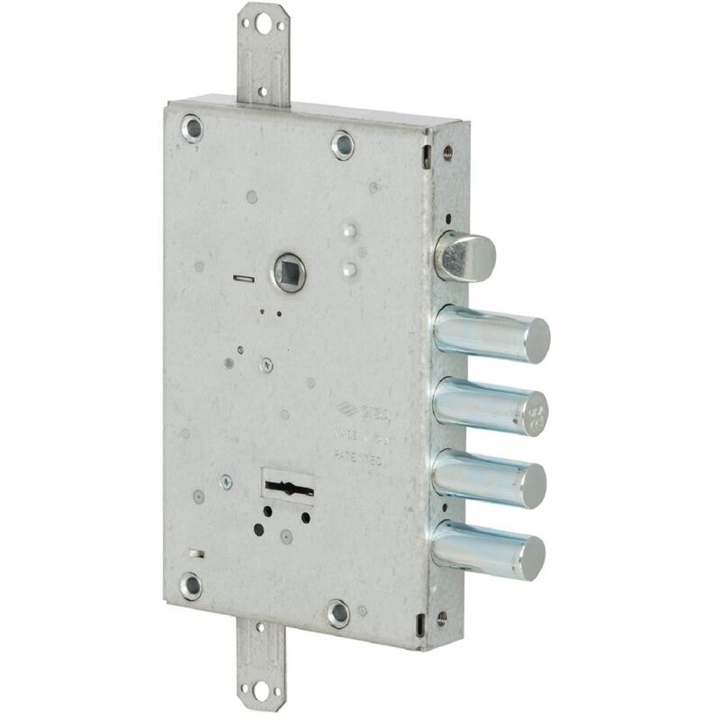 Doppia mappa. Scrocco e catenaccio. Scatola in acciaio, scrocco e catenaccio in acciaio zincato ad alta resistenza. Fornita senza aste. Con tre chiavi più una di servizio.. E 64 -4 mand./4 caten. chiave lunga. Prezzo inteso per: 1 PZ