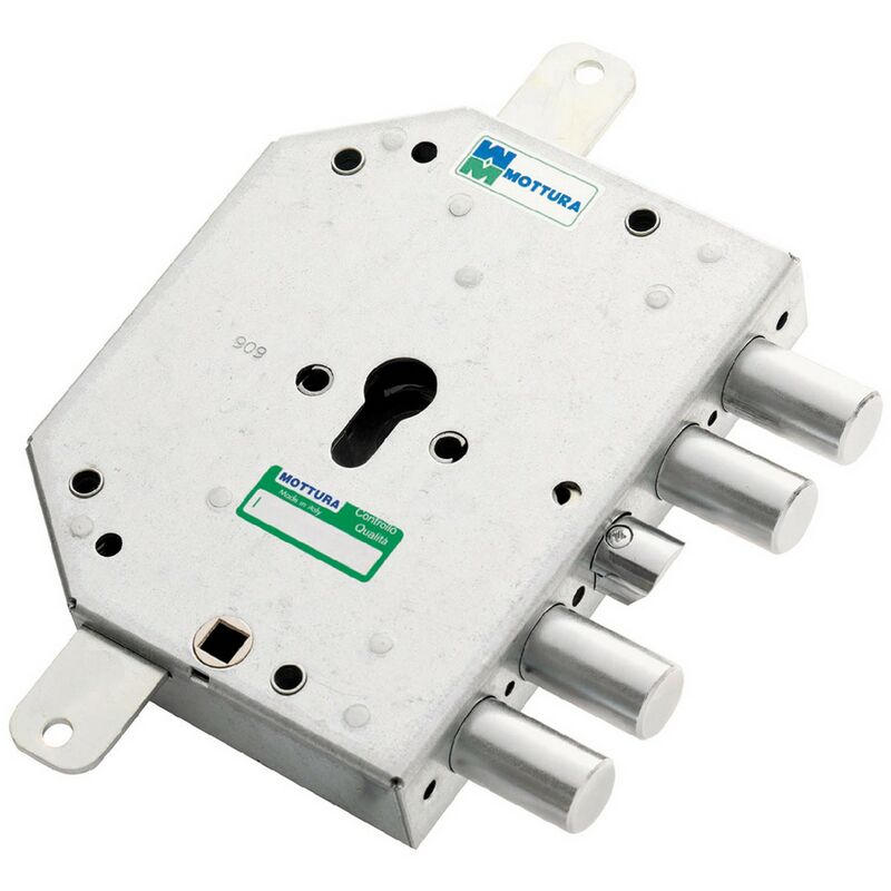 Foro cilindro europeo, mezzo giro reversibile ø 19 mm azionato da chiave e maniglia. entrata maniglia 56 mm. quattro chiavistelli tondi ø 19 mm con corsa mm 29. interasse mm 28. corsa aste mm 14. completa di mostrina ottonata. senza aste.dx e 60 - mm 13