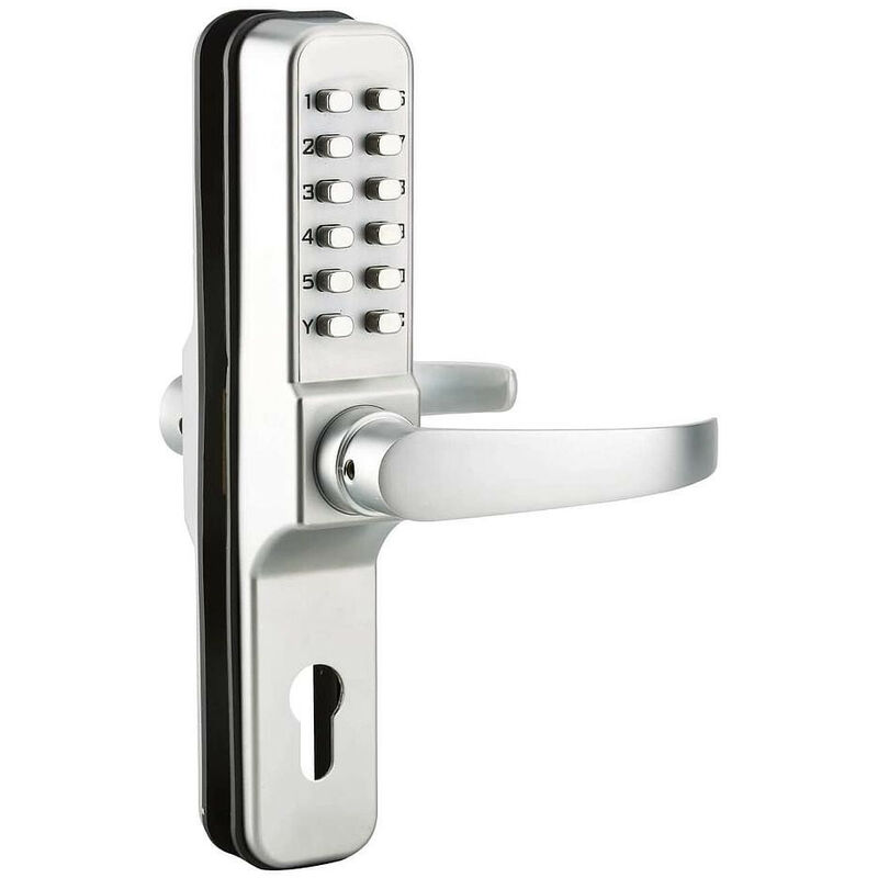 Thirard - Serratura a combinazione cromo opaco con maniglia a doppia leva per serratura da infilare 70 mm distanza 3 chiavi Serratura di alta sicurezza appositamente progettata per palazzetti dello sport, ingressi di edifici, porte collettive. - Cassa in lega modellata. - Meccanismo di combinazione modificabile da 2 a 8 cifre o lettere. - 8.000 combinazioni possibili. - Cambio rapido di combinazione. - Con maniglia a doppia leva. - Reversibile destra / sinistra. - Per spessore della porta da 32 a 55 mm max. - 3 tasti. Caratteristiche tecniche: Finitura: Cromato opaco Uso: Porta d'ingresso 5 anni di garanzia