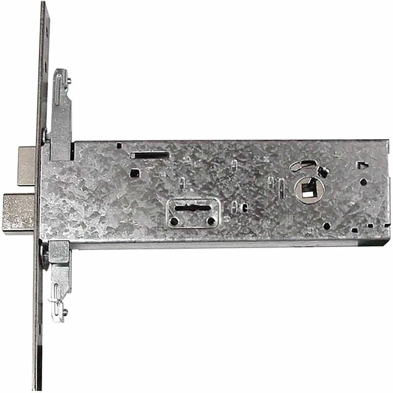 Chiusura triplice, quattro mandate, scrocco separato reversibile e regolabile. Possibilità di sostituzione scrocco con rullo o con tappo per chiusura solo catenaccio. Scatola mm 203x64. Frontale inox mm 240x22x3. Agganci per asta a vite. Dotata di due guida chiave in nylon, viti di fissaggio, coppia spessori sottofrontale, tre chiavi.