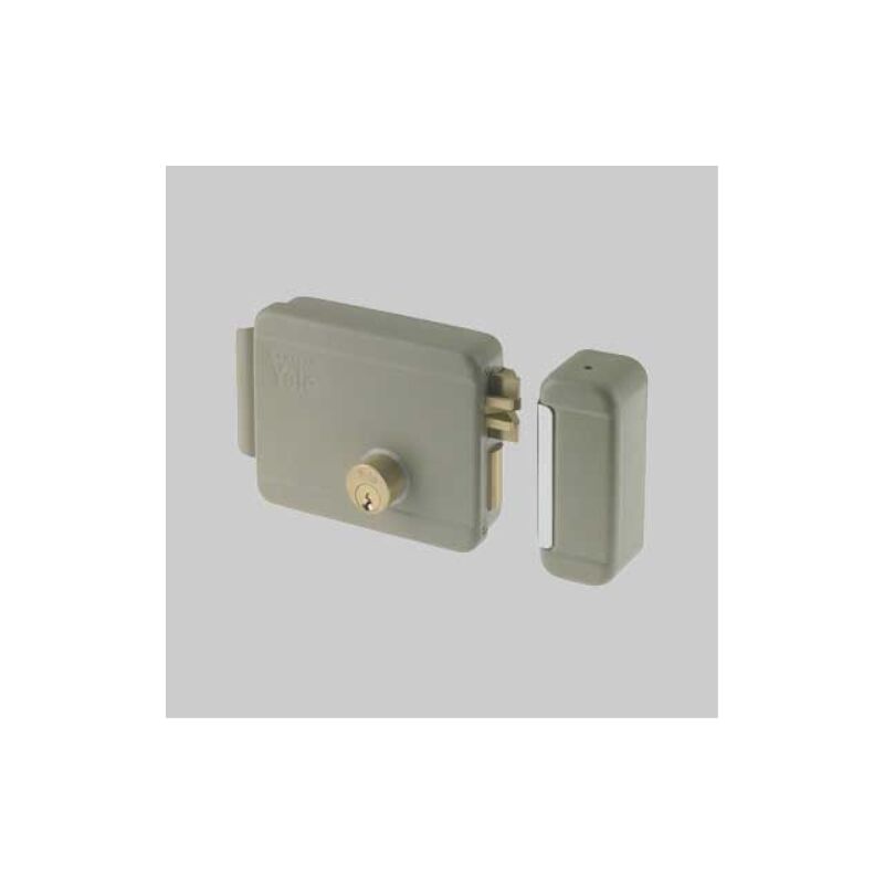 Scrocco azionato dall'esterno e dall'interno mediante chiave e a distanza mediante impulso elettrico a basso voltaggio: 12V. Catenaccio meccanico a 2 mandate azionato mediante chiave dall'interno e dall'esterno. Cilindro interno ed esterno fisso. Fornita di controbocchetta e tettuccio parapioggia. Scatola mm.130x106. Serratura elettrica per cancelli art. 68080 yale e70 dx YALE Serrature per infissi, elettriche e alluminio