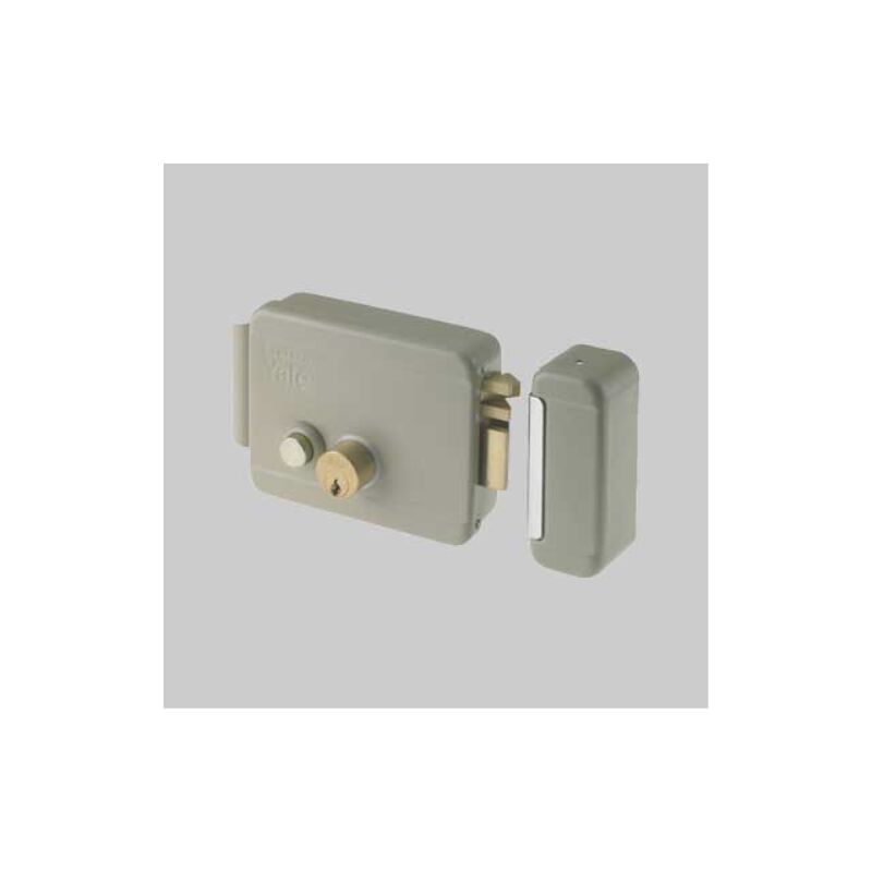 Scrocco azionato dall'esterno mediante chiave e dall'interno mediante pulsante e a distanza mediante impulso elettrico a basso voltaggio: 12V. Cilindro interno ed esterno fisso. Fornita di controbocchetta. Scatola mm.130x106. Serratura elettrica per cancelli art. 688 yale e60 sx YALE Serrature per infissi, elettriche e alluminio