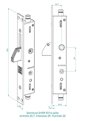 Serratura Entrata 25.7 a Spillo SIVER 921 a Spillo in Acciaio Zincato per Persiane, Inferriate da Montante Verticale