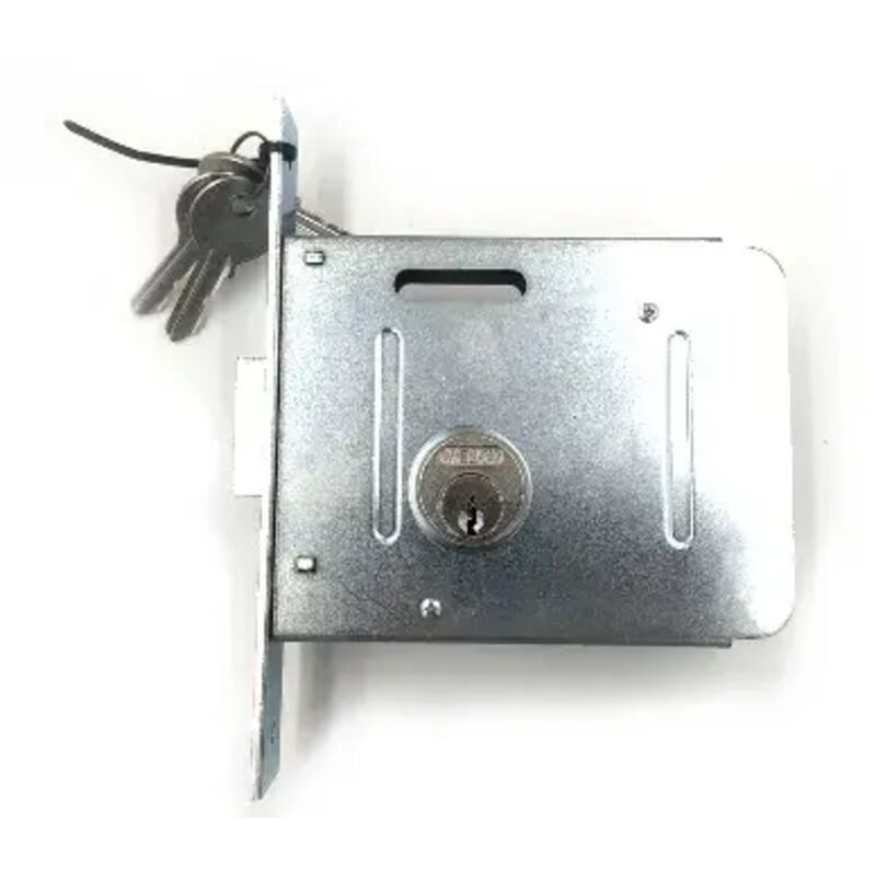 Serratura cancelli/porte ferro infilare Acciaio zincato tropicalizzato 2 mandate Scatola mm 125x100 - Frontale mm 22x170 Entrata mm 50 - Cilindro serie 605.00.00.1