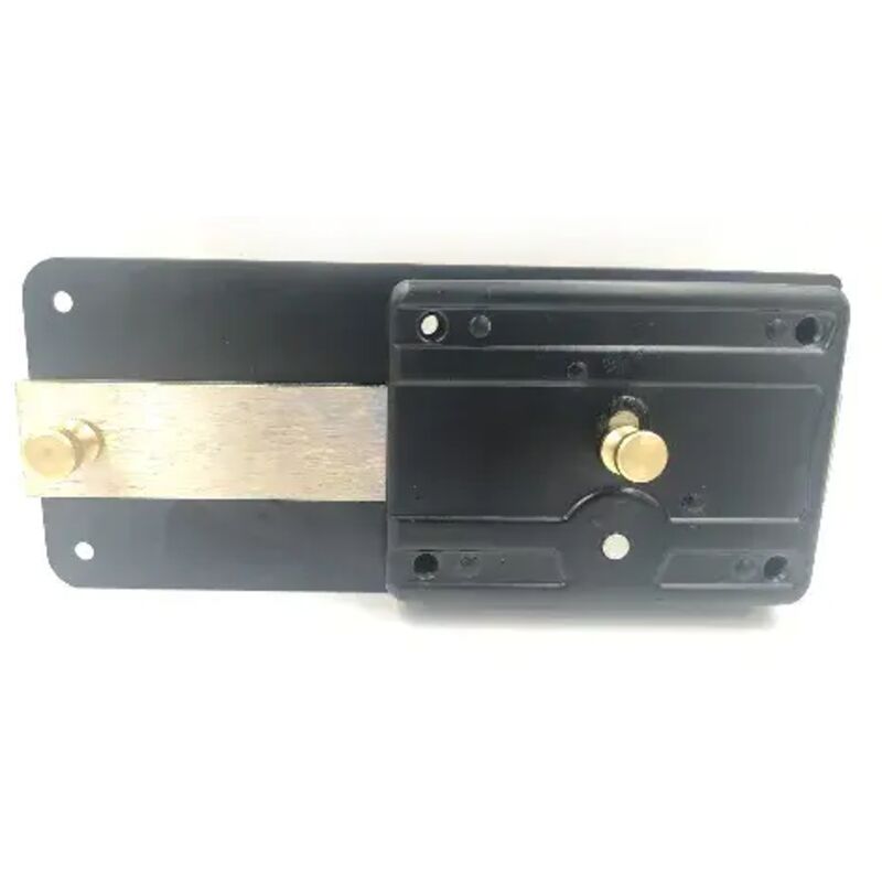 Ferroglietto verniciato nero - Applicare legno Catenaccio 6 mandate con leva interna Scatola mm 115x85 - Entrata mm 50/60 Cilindro fisso mm 50 603.01.00 Bocchetta - Borchia mm 43x43 - 2 chiavi