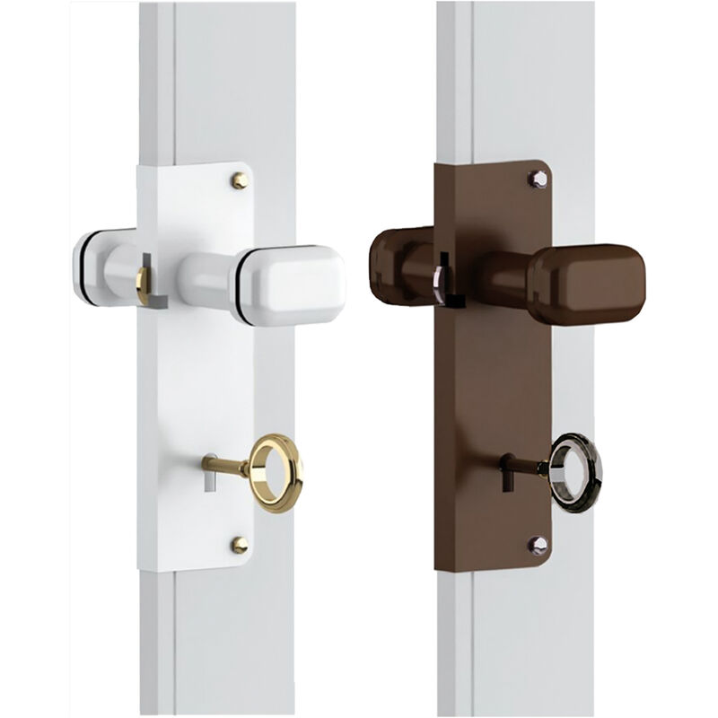 SERRATURA A GANCIO CON POMOLO colore marrone Per porte a soffietto. Composta da coppia pomoli, chiave, viti fissaggio, serratura mm 115x35, copertura esterna mm 147x48. Accessorio che può sostituire le maniglie senza pomolo a scrocchetto magnetico. Modello:colore marrone Codice Prodotto:DFL=1040712 Marca:KASART Con Codice EAN: Altre Foto: KASART