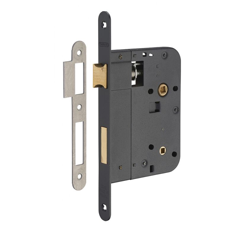 Cassa in acciaio stampato. Frontale in ottone. 1/2 giro in ottone reversibile senza smontare la scatola. Chiusura a chiavistello in ottone. Richiamo del 1/2 giro con la chiave. 7mm quadrati, 70mm di distanza tra gli assi. Frontale piatto secondo la finitura.