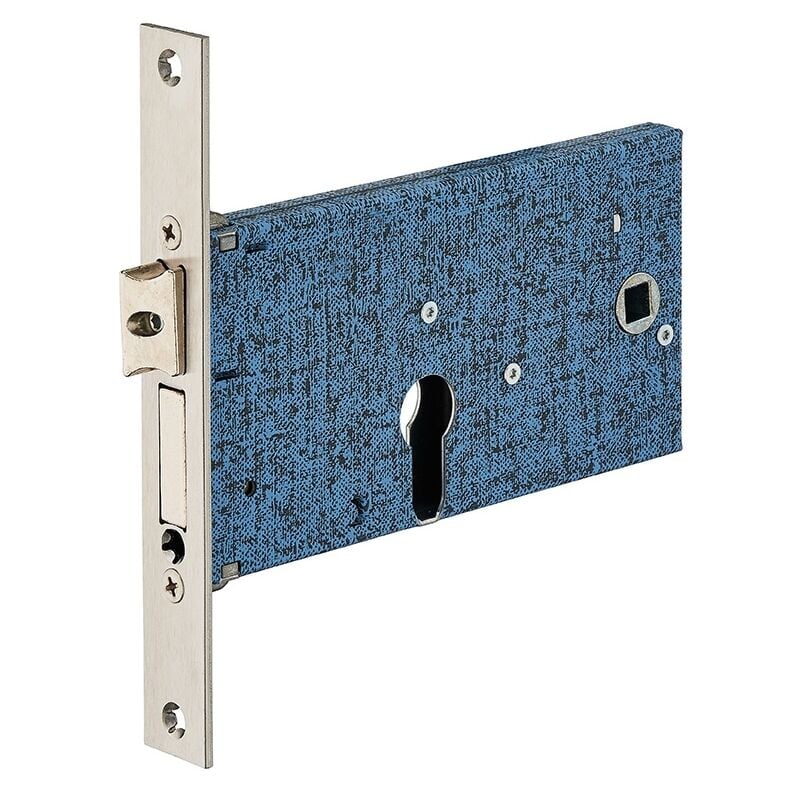Serratura da incasso a cilindro per porta esterna, asse 67mm, piastra quadra Thirard