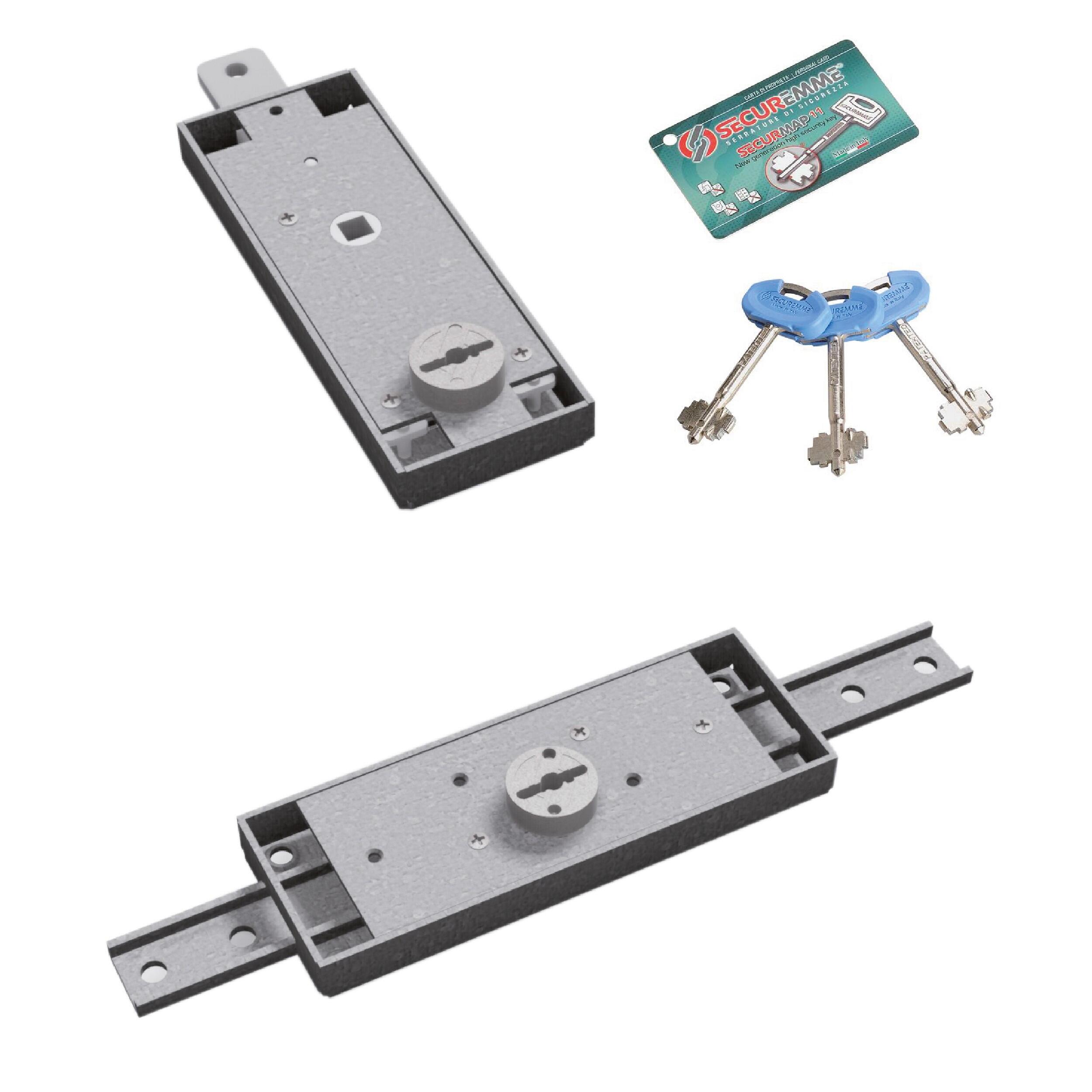 COPPIA SERRATUREDOPPIA MAPPASECURMAPPER BASCULANTECatenaccio diritto- zincataSistema antipicking3 chiaviSecurmap incluse - Mano - Accoppiata - Tipologia - Serratura centrale più basculante - Int. fiss. - 138 x 39 - Foro - Doppia