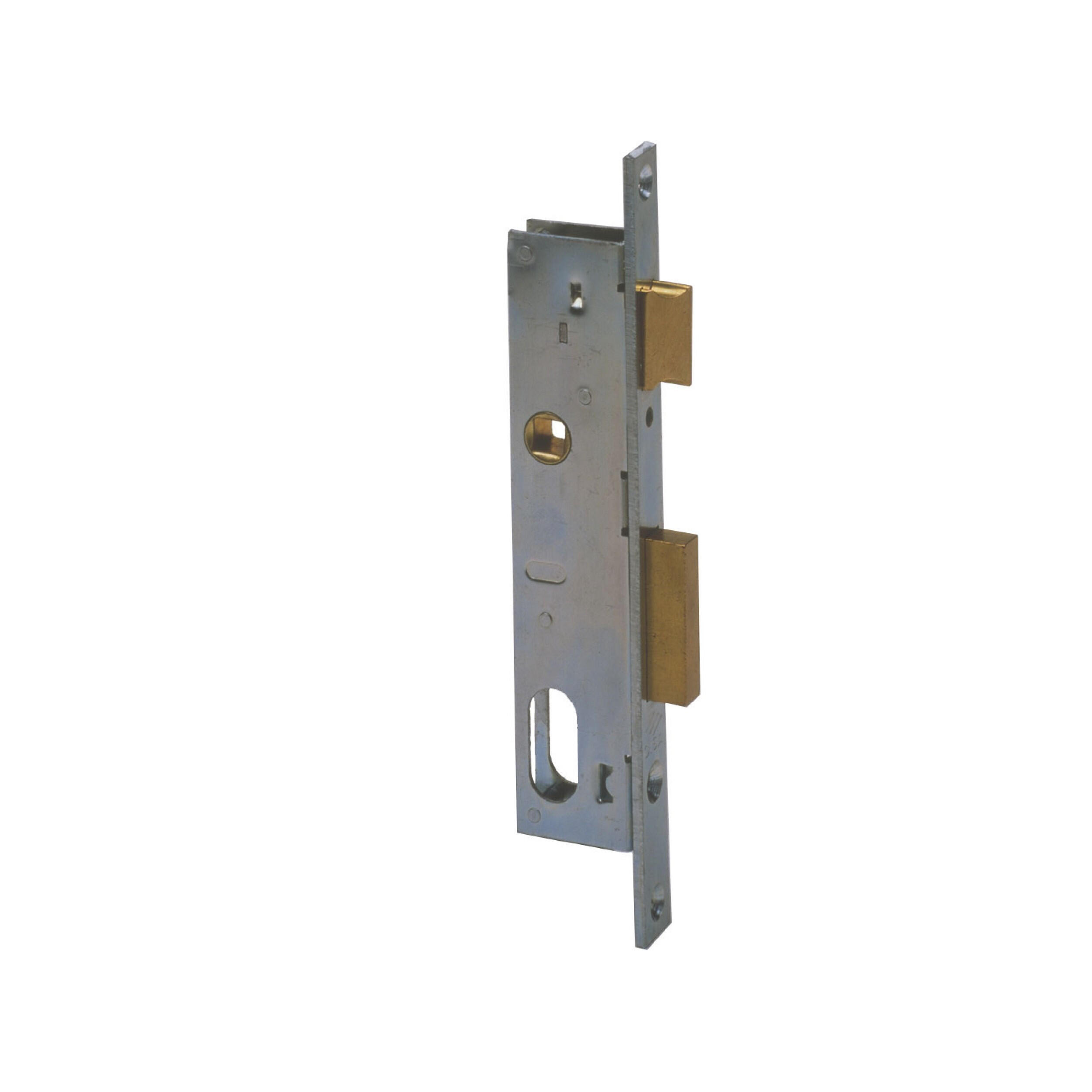 SERRATURA infilare 1 mandata e scrocco cilindro ovale non compreso - E - 18 - Chiusura - Laterale - Frontale - 16 X 194 - Dim. cassa - 28,5 X 150 - Int. man. - 69 - Tipologia - Catenaccio più scrocco - Modello - Serratura infila