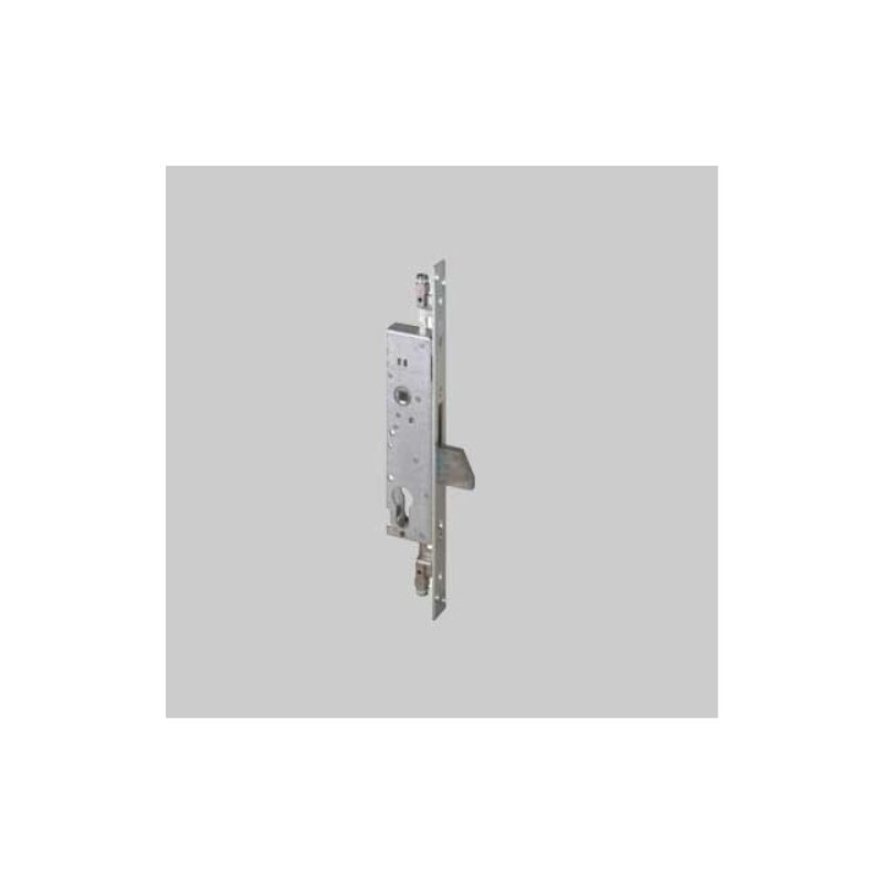 1 Mandata. Interasse mm 85. Frontale in acciaio inox mm 25. Corsa rinvii mm 25. Scatola in acciaio con rivestimento in zinco. Catenaccio nichelato. Quadro maniglia mm 8. Predisposizioni per chiusure supplementari con boccole filettate M8. Cilindro non incluso. Serratura da infilare a cilindro europeo per persiane art. 46800 cisa e30 CISA Serrature cisa