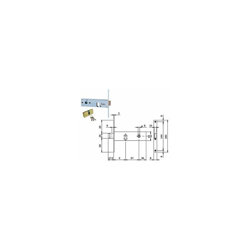 Mm.70 frontale mm.16 (704701S) chiusura laterale scatola zincata catenaccio mandata mm.9 con scrocco incorporato richiamo scrocco con chiave o quadro maniglia mm.8 cilindro ovale F3 mm.54 compreso Pezzi per confezione primaria: 1,0 Larghezza 20,1 Lunghezza 17,6 Altezza 3,3 Peso 0,561
