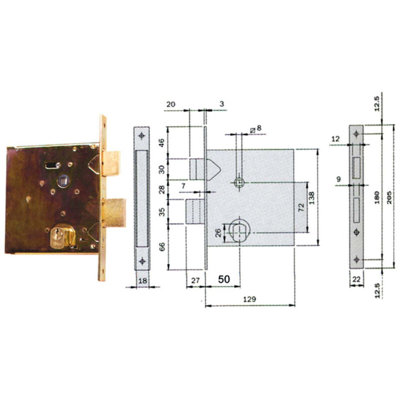 Serratura zincata gialla da infilare ferro Catenaccio 2 mandate Scrocco separato reversibile quadro 8 Cilindro profilo Yale non incluso Scatola 65x152 - Frontale 22x215 - Entrata 35
