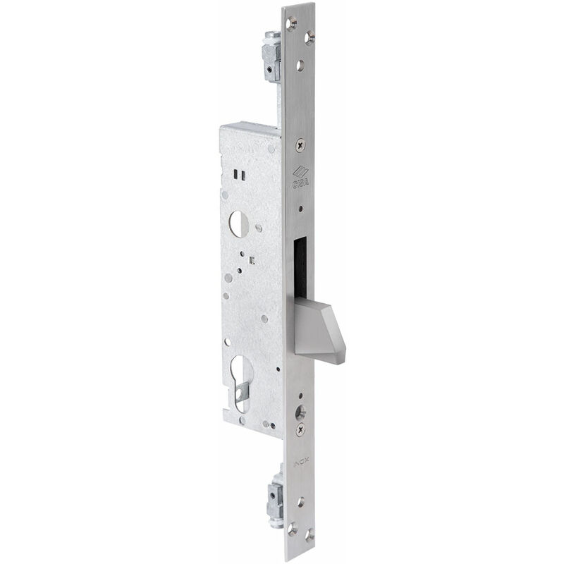 SERRATURA DA INFILARE PER MONTANTI PER FERRO ART. E35 Scatola in acciaio con rivestimento in zinco. Foro cilindro europeo. Catenaccio nichelato. Frontale 25 mm. Predisposizione per chiusure supplementari con boccole filettate M8. Dotazione vite fissaggio cilindro. Senza cilindro. Modello:E35 Codice Prodotto:DFL=3161634 Marca:CISA Con Codice EAN: Altre Foto: CISA