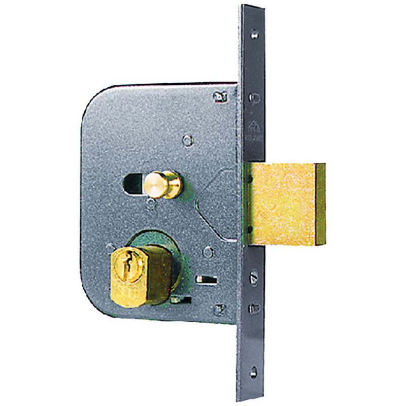 Pomolo interno. una mandata,catenaccio e scrocco incorporato. dotata di cilindro, tre chiavi, due ghiere.e 45