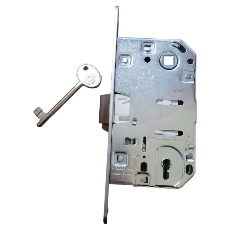 Stv - serratura da infilare per porte interne (a76) patent mediana d90 f18 - con bordi tondi - in acciaio cromo satinato e50