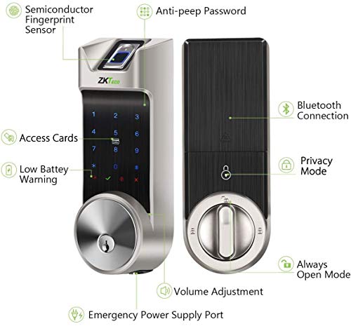 Serratura Intelligente & Biometrica Automatica senza chiave -ZKTeco AL40B -Smart Lock +5 Badge Mifare -Tastiera Digitale - Lettore Impronte-Bluetooth 4.0- Smartphone App-Registro delle entrate