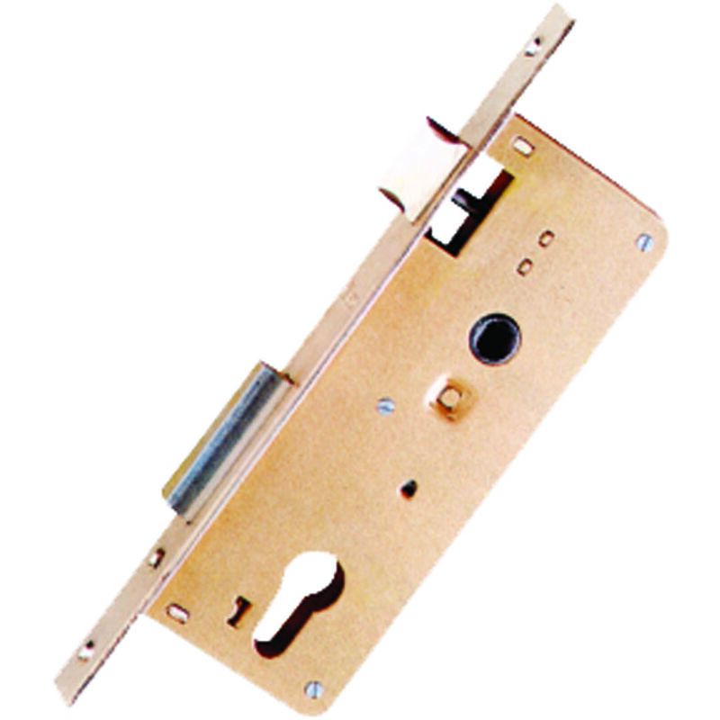 In acciaio ottonato, per infissi in legno, scrocco rovesciabile, con quadro maniglia, in dotazione: viti di fissaggio, 2 ghiere. - Confezione Master 10 Pz.