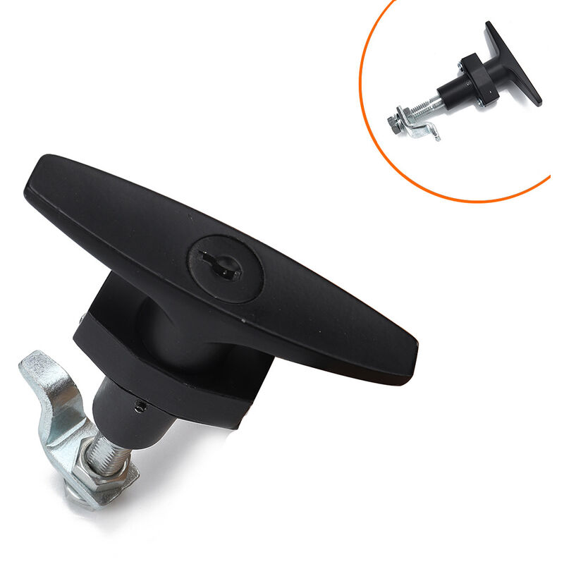1. Materiale del prodotto: corpo della serratura in lega di zinco, bullone in acciaio in acciaio 2. Caratteristiche del prodotto: serratura con maniglia a forma di T, con nucleo di blocco 3. Trattamento superficiale: plastica nera opaca 4. Applicazione del prodotto: rimorchi, camper, roulotte, Telai per armadi elettrici, ante per apparecchiature di protezione ambientale, apparecchiature industriali, ecc. 5. Vantaggi del prodotto: proprietà antiusura e anticorrosione 6. Funzione del prodotto: serratura della porta comprimibile, l'altezza del fermo è regolabile 7. Accessori del prodotto: chiave * 2 pezzi