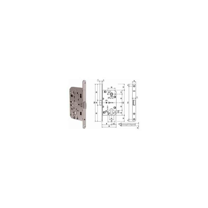 Mm.50 bordo cromato opaco (1103.50.34) con foro cilindro quadro maniglia mm.8 interasse mm.85 frontale bordo tondo mm.18 serratura per porte interne a filo o a battente con scrocco centrale in poliammide che le conferisce straordinaria silenziosità in chiusura mantenendo l'affidabilità e la robustezza che contraddistingue tutte le serrature AGB con QUICK LATCH, il nuovo sistema brevettato di aggancio rapido dello scrocco, bastano pochi secondi per estrarlo, orientarlo a seconda della mano della porta e reinserirlo a scatto Mediana Evolution si distingue per la straordinaria silenziosità in chiusura e la precisione negli accoppiamenti meccanici che trasmettono una piacevole sensazione di fluidità della maniglia e della chiave Pezzi per confezione primaria: 1,0 Larghezza 7,3 Lunghezza 15,7 Altezza 1,7 Peso 0,376